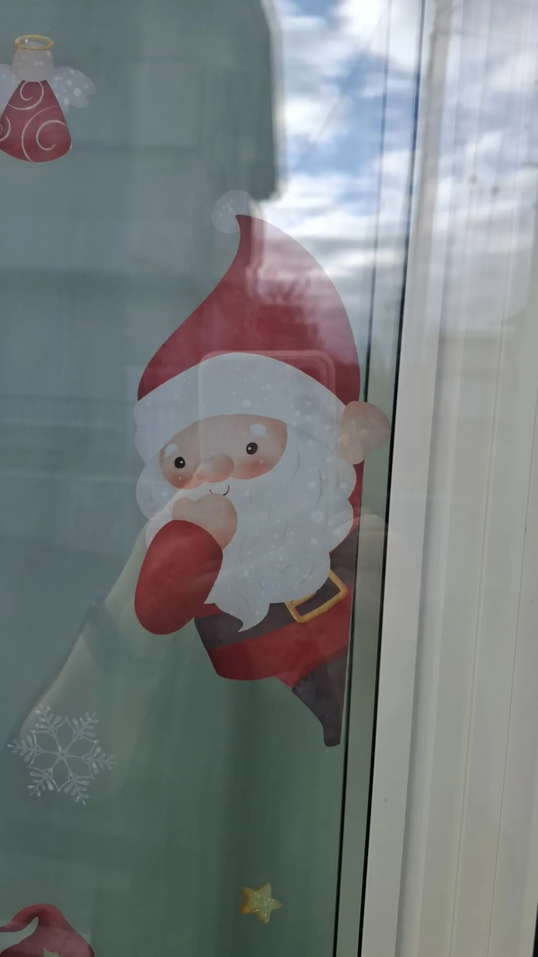 道路側からは窓にサンタクロースや雪だるまがいます。